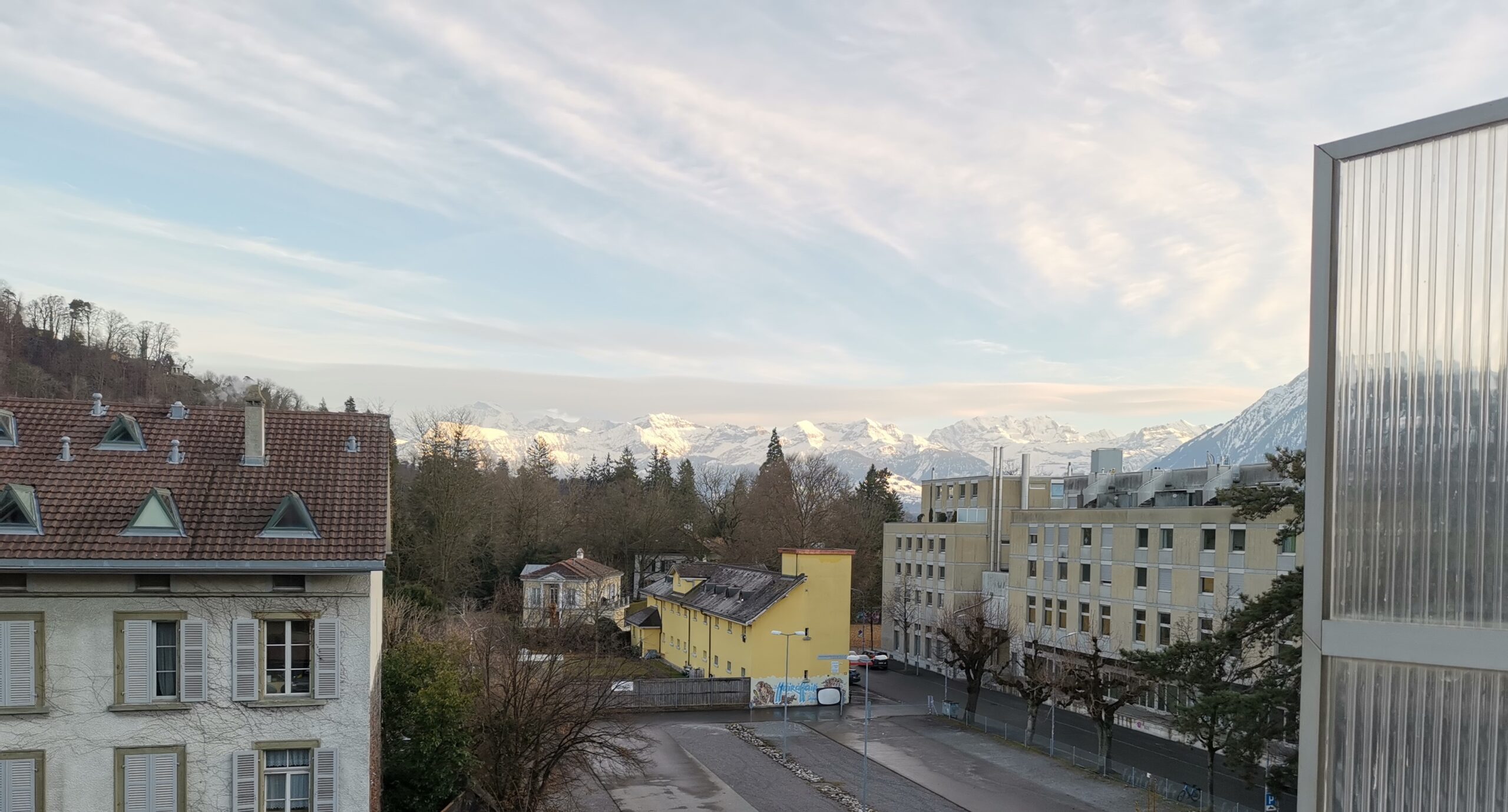 Holzparkett und Tatamimatten, schönste Aussicht auf die Bergwelt, das Rauschen der Aare bei der Schleuse untendran